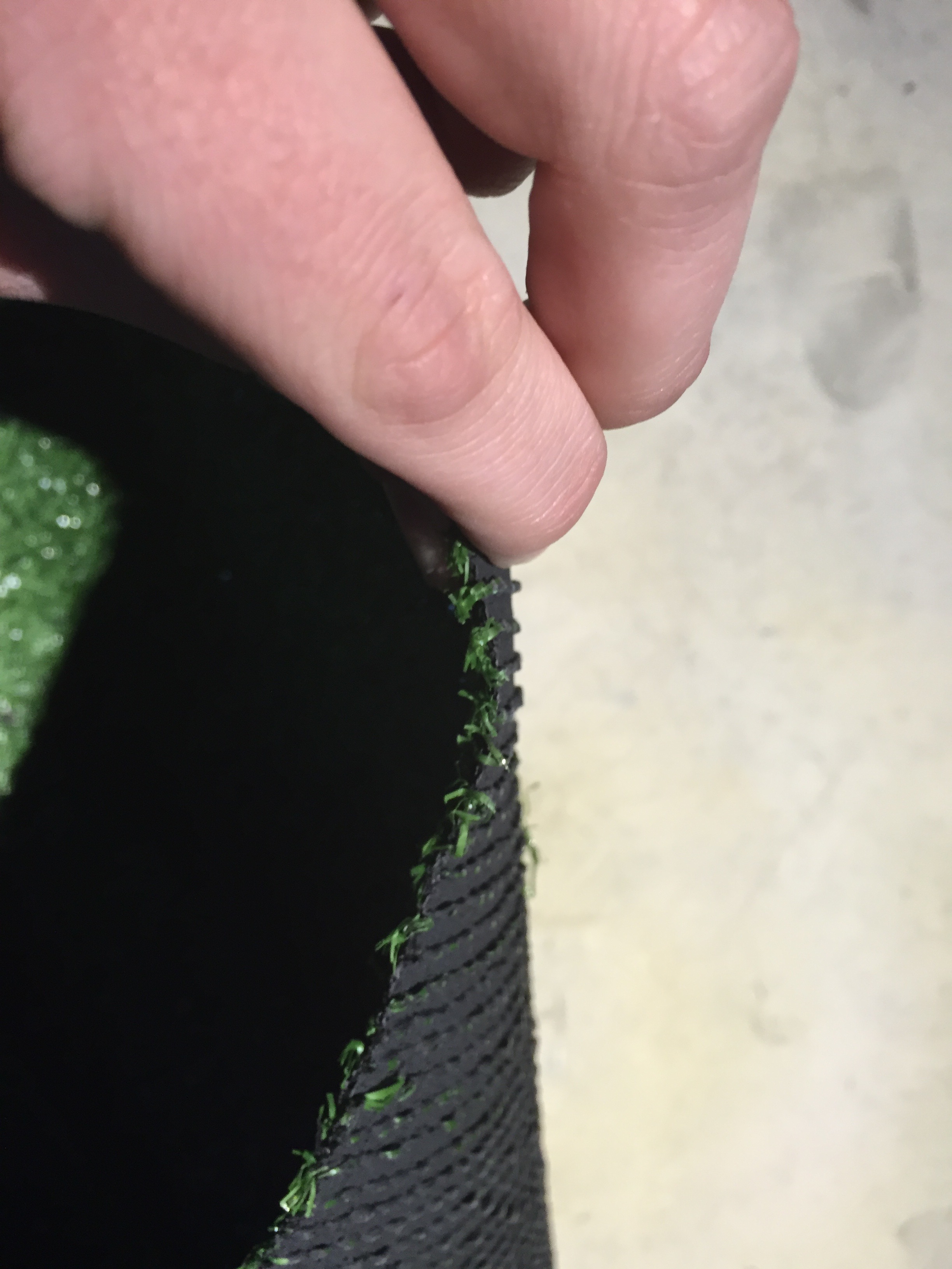 Back in Step 16 I bought a super thin and crappy 15’x10’ grass carpet rug from Amazon. It hasn’t aged well and I’m not surprised to find several holes and worn out areas.