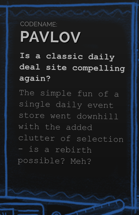 I really enjoy the excitement of getting into new distinct categories, but Meh is planned as a catch-all single event site.